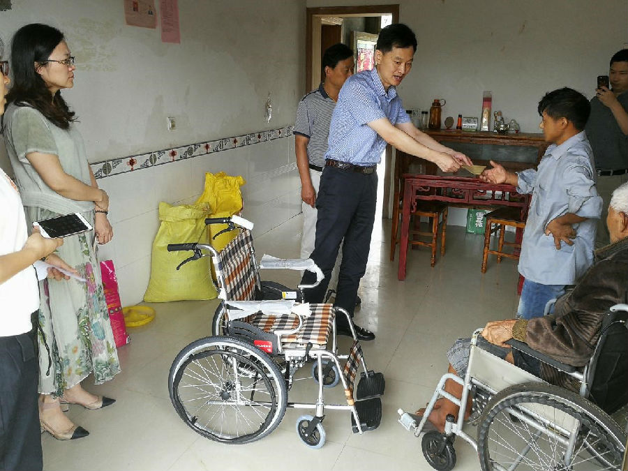 会后,在村两委的陪同下,沈世跃一行分两组深入贫困户家中,与贫困户亲切交谈,为残疾贫困户提供了轮椅,并送上了节日问候和慰问物品。走访了房屋年久失修的贫困户,实地查看房屋情况,详细了解贫困户生产生活、家庭收入等情况,并表示会结合公司实际提供必要的帮助。