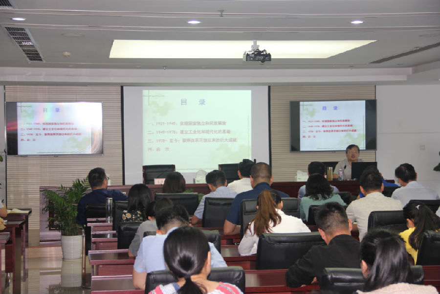 为贯彻落实习近平总书记关于学习党史国史的重要思想,重温党的历史,传承红色基因,增强做好公司改革发展稳定各项工作的自觉性,9月28日下午,在即将迎来中华人民共和国成立71周年之际,公司邀请市委组织部刘金峰同志讲授《中国共产党奋斗历程及其启示》专题党课,集团公司中层及以上管理人员、子公司负责人、全体党员参加党课学习。
