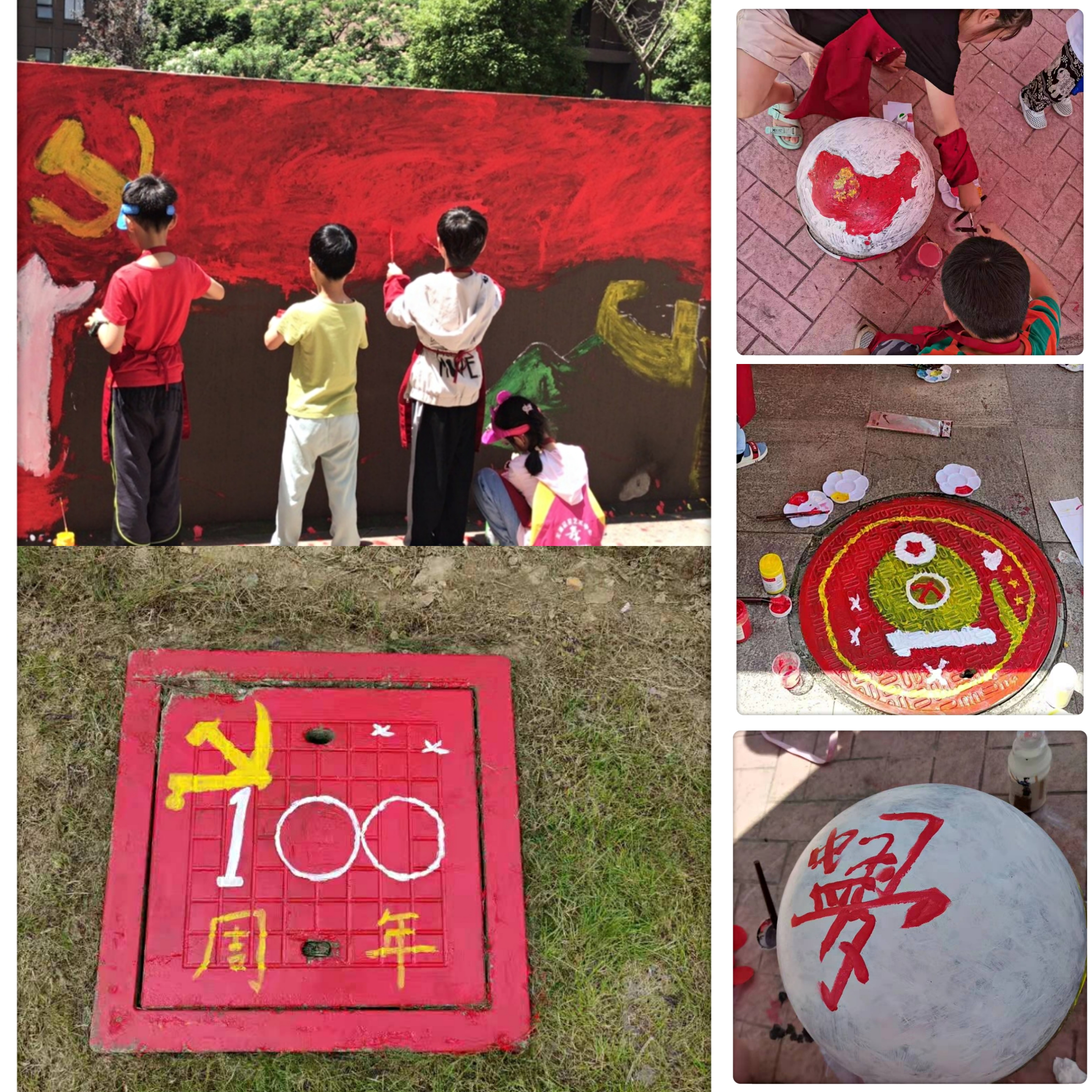 活动开始后,工作人员贴心地为小朋友们分发彩绘工具,看着调色盘里五颜六色的颜料,小朋友们都兴高采烈地挥舞起小刷子忙得不亦乐乎。在家长们的陪伴下,小朋友们以梦为笔、以愿为图,用稚嫩的小手在砖墙、石墩、井盖上绘制一幅幅积极向上、绚丽醒目的图案,鲜艳的党旗、中国版图、中国梦等一幅幅“变脸”后的石墩、井盖闪亮呈现在小区,笔下画出的不仅是孩子们的梦想,更是对党深深的祝福!