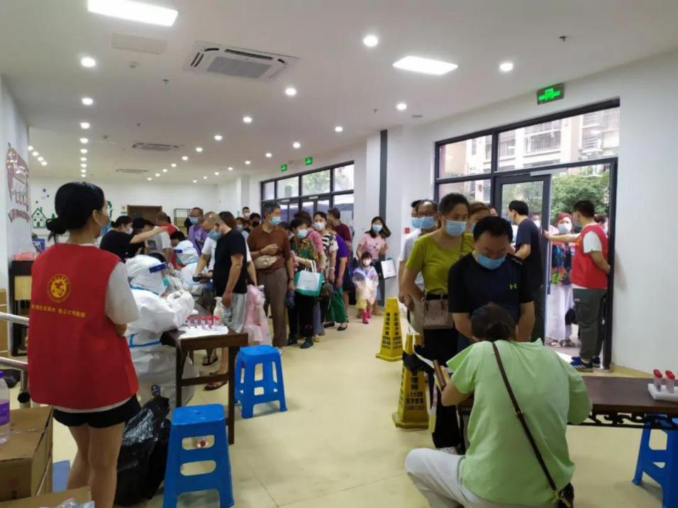 接到全员核酸检测的命令后,为配合社区做好疫情防控工作,王家巷社区、旭日天都社区、罗保社区居家养老服务中心均暂停使用,作为临时核酸检测采集点。居家养老服务中心的工作人员第一时间向社区报到,积极协助社区开展核酸检测等志愿工作,党员同志更是在关键时刻冲在一线、站在前沿,全天工作17个小时,带头维持现场秩序,稳定群众情绪,积极协调场地,有条不紊的开展防疫工作。