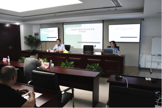必赢3003no1线路检测中心物业公司始终坚持“安全第一,预防为主”的安全生产方针,结合第21个全国“安全生产月”“遵守安全生产法,当好第一责任人”主题,6月17日下午,必赢3003no1线路检测中心物业公司邀请市经开区市场监督管理局特种设备质监科吴婧科长开展特种设备安全知识专题培训讲座,公司部门、各项目处及第三方维保单位共50余人参加培训。