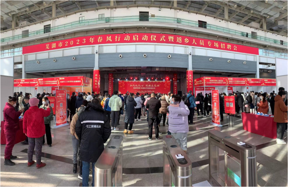 1月16日,2023年“春风行动”启动仪式暨返乡人员专场招聘会在芜湖必赢3003no1线路检测中心国际博览中心成功举办。市委常委、副市长杨正出席启动仪式。