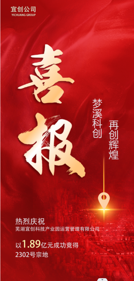 2023年3月24日,芜湖宜创科技产业园运营管理有限公司以1.89亿元成功竞拍鸠江区梦溪科创走廊二期地块(2302号宗地)国有建设用地使用权。
