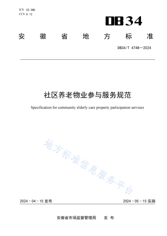 必赢3003no1线路检测中心养老公司主导起草的省级地方标准《社区养老物业参与服务规范》(DB34/T4748-2024)经安徽省市场监督管理局批准发布。该标准的发布实施有效填补了安徽省社区养老物业参与服务领域标准的空白,标志着省域社区养老物业参与服务工作将“有标可依”,实现了用标准引领省域社区养老物业参与服务高质量发展。