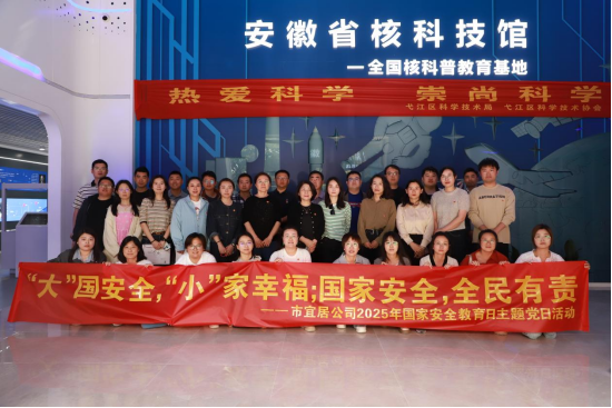 为深入贯彻落实习近平总书记关于全面加强国家安全教育的重要指示精神,推动国家安全法治宣传教育走深走实,4月10日,公司开展了以“‘大’国安全,‘小’家幸福;国家安全,全民有责”为主题的国家安全教育日主题党日活动,组织集团公司全体党员同志前往安徽省核科技馆进行实地参观。