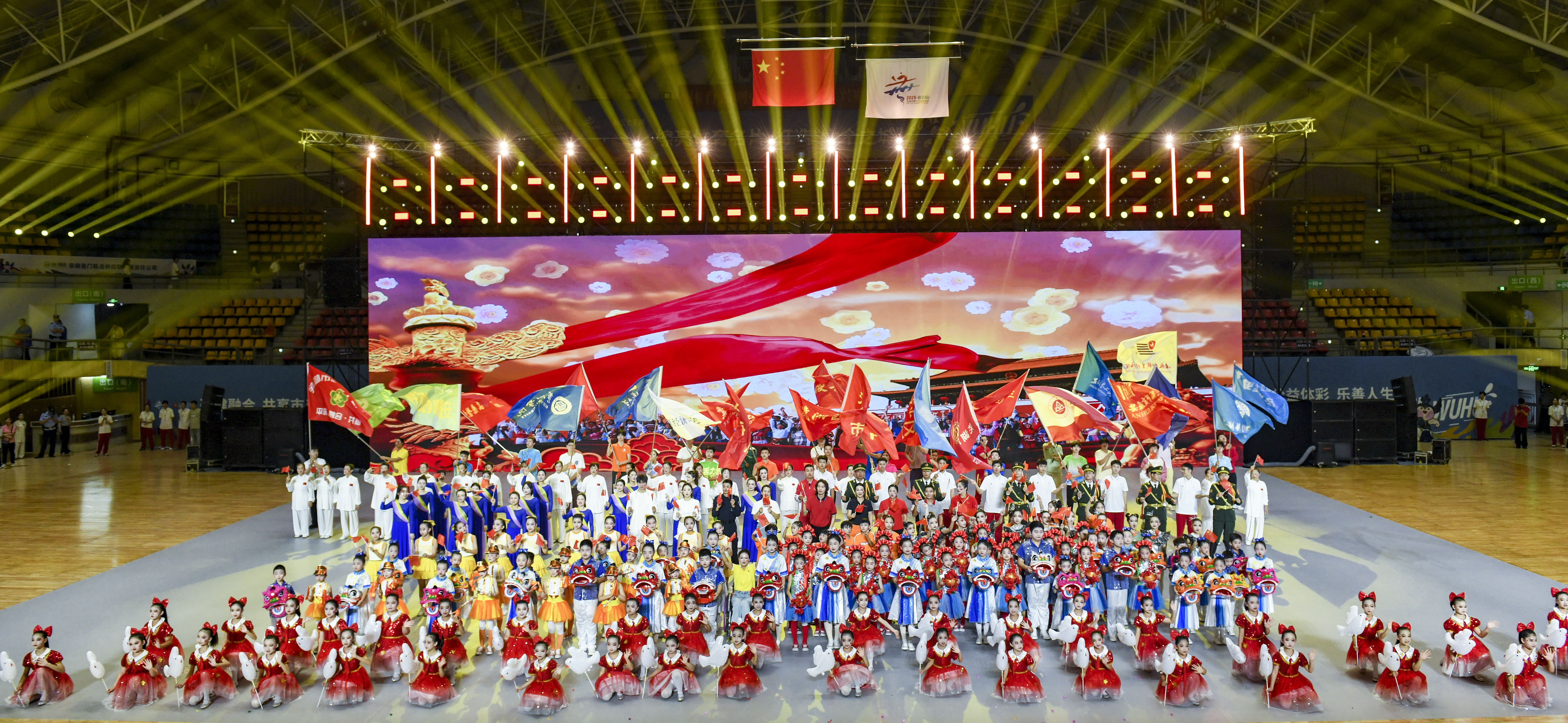 开幕式突破传统模式,首次采用全息投影地面舞台设计,通过动态光影与实体表演相结合,营造出沉浸式的视觉体验。各代表团以特色展示方式入场,彰显了芜湖各区县及参赛群体的活力与风采。演出环节巧妙融入非遗元素与传统文化展示,既弘扬了地方文化特色,也增强了活动的艺术感染力。