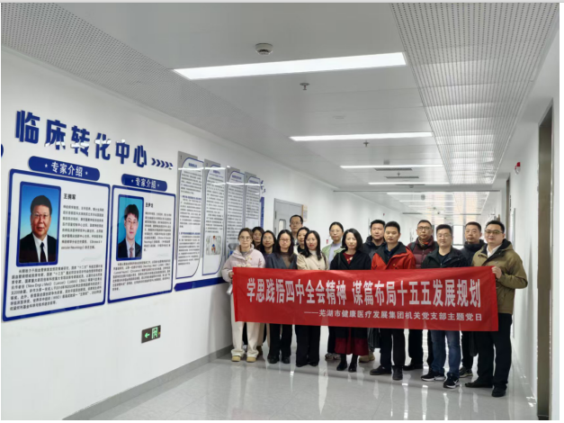 为深入学习贯彻党的二十届四中全会精神,精准谋划公司“十五五”发展规划,11月28日,芜湖市健康医疗发展集团有限公司机关党支部组织全体党员赴皖南医学院产学研创中心开展主题党日参观学习活动。公司党总支书记王少华、党总支委员兼机关党支部书记刘幸茹带队参加。